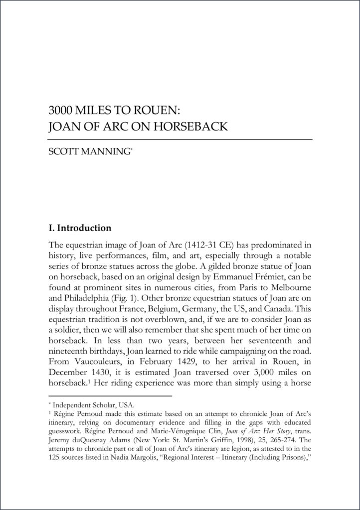 “3000 Miles to Rouen: Joan of Arc on Horseback,” Saints and Sinners on Horseback, vol. 1, ed. Miriam A. Bibby (Trivent Publishing, 2023), 257-283.