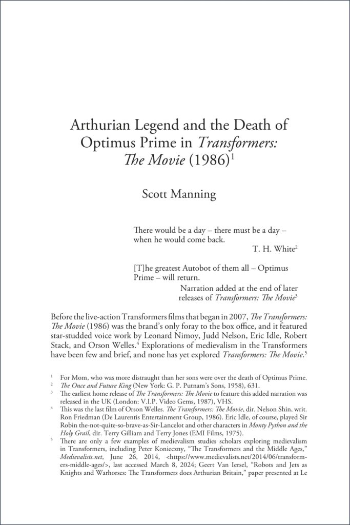 “Arthurian Legend and the Death of Optimus Prime in Transformers: The Movie (1986),” Studies in Medievalism XXXIV (2025): 192-212.